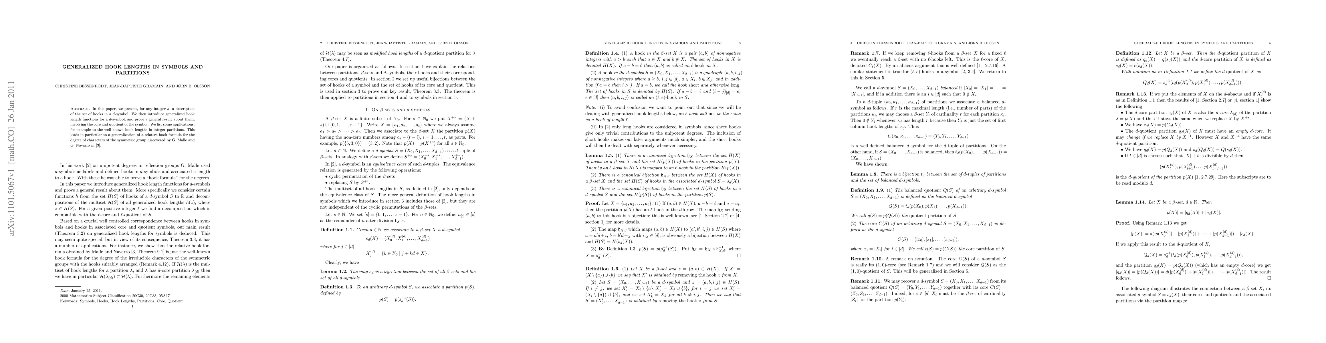 This research contributes to the understanding of hook lengths in symbols and partitions, which has implications for character theory of symmetric groups and partition combinatorics.