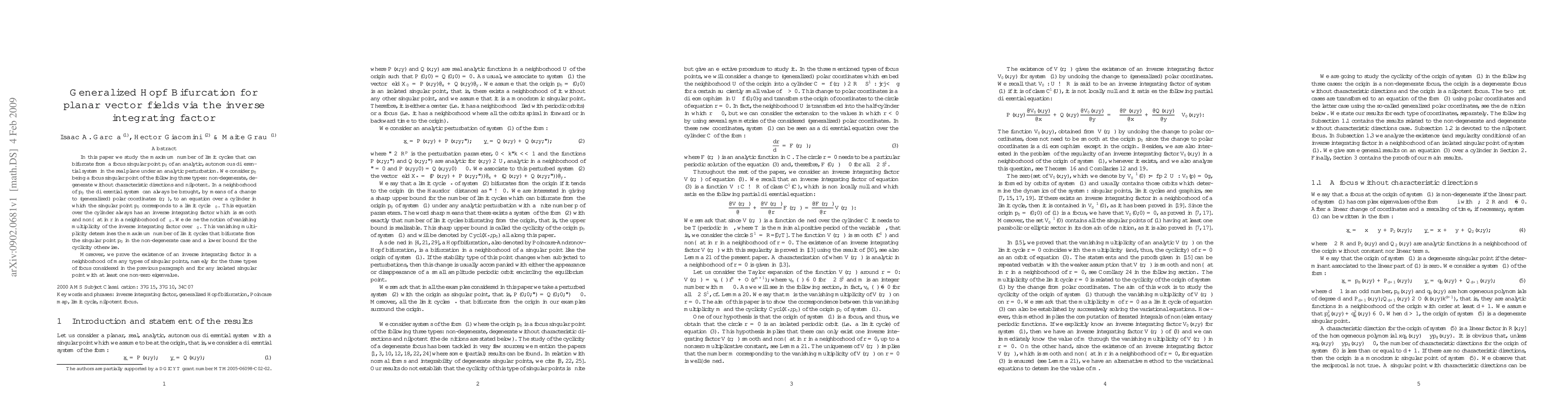 This paper explores the maximum limit cycles bifurcating from a focus singular point in planar vector fields using inverse integrating factors. It introduces the concept of 'vanishing multiplicity' of the inverse integrating factor to determine this maximum, applicable to non-degenerate, degenerate, and nilpotent focus cases. The methodology involves transforming the system into generalized polar coordinates, ensuring an inverse integrating factor's smoothness and non-flatness in 'r'. The findings extend to singular points with at least one non-zero eigenvalue, providing bounds on limit cycle cyclicity.