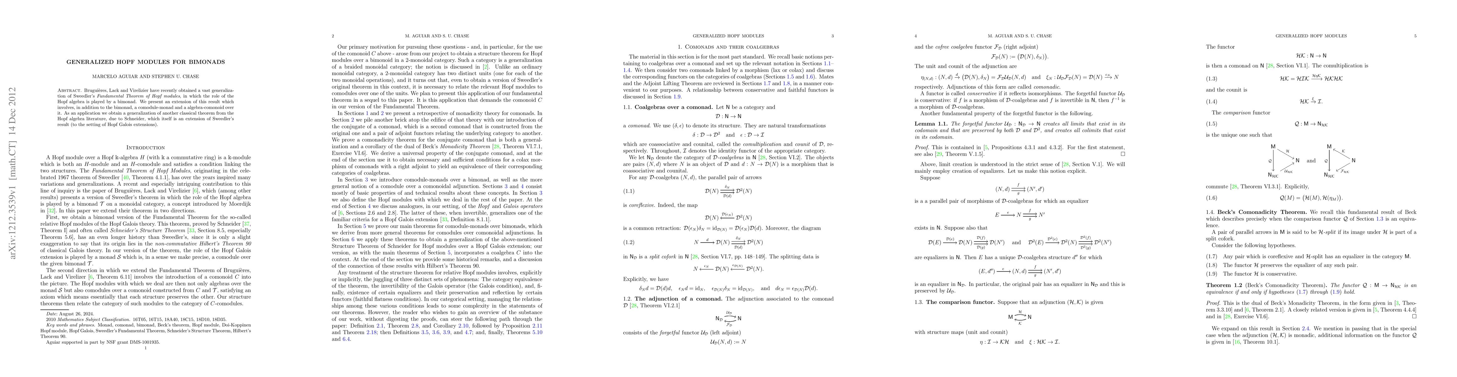 Brugui\`eres, Lack and Virelizier have recently obtained a vast generalization of Sweedler's Fundamental Theorem of Hopf modules, in which the role of the Hopf algebra is played by a bimonad. We present an extension of this result which involves, in addition to the bimonad, a comodule-monad and a algebra-comonoid over it. As an application we obtain a generalization of another classical theorem from the Hopf algebra literature, due to Schneider, which itself is an extension of Sweedler's result (to the setting of Hopf Galois extensions).