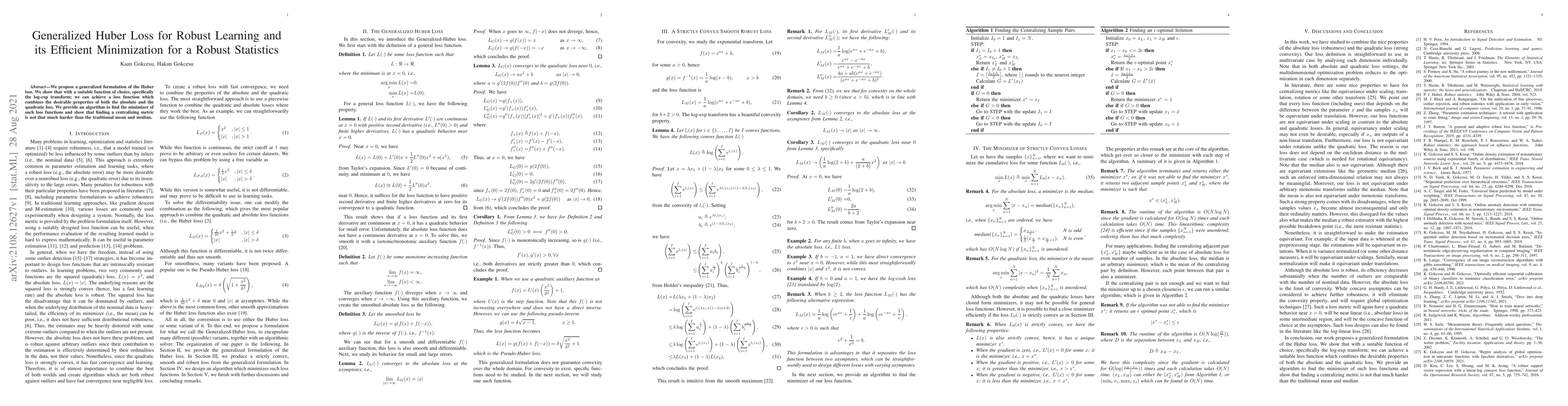 This paper proposes a generalized Huber loss that merges the benefits of both absolute and quadratic losses using the log-exp transform. It also presents an efficient algorithm for minimizing this loss and demonstrates that finding a centralizing metric is not significantly harder than using traditional mean and median.