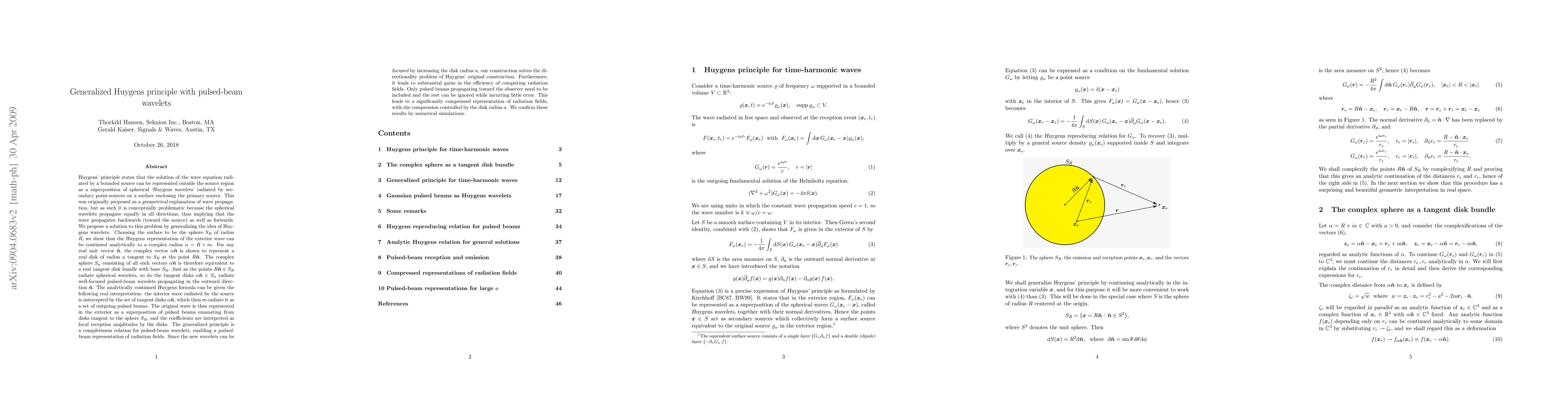 Huygens' principle has a well-known problem with back-propagation due to the spherical nature of the secondary wavelets. We solve this by analytically continuing the surface of integration. If the surface is a sphere of radius $R$, this is done by complexifying $R$ to $R+ia$. The resulting complex sphere is shown to be a real bundle of disks with radius $a$ tangent to the sphere. Huygens' "secondary source points" are thus replaced by disks, and his spherical wavelets by well-focused pulsed beams propagating outward. This solves the back-propagation problem. The extended Huygens principle is a completeness relation for pulsed beams, giving a representation of a general radiation field as a superposition of such beams. Furthermore, it naturally yields a very efficient way to compute radiation fields because all pulsed beams missing a given observer can be ignored. Increasing $a$ sharpens the focus of the pulsed beams, which in turn raises the compression of the representation.