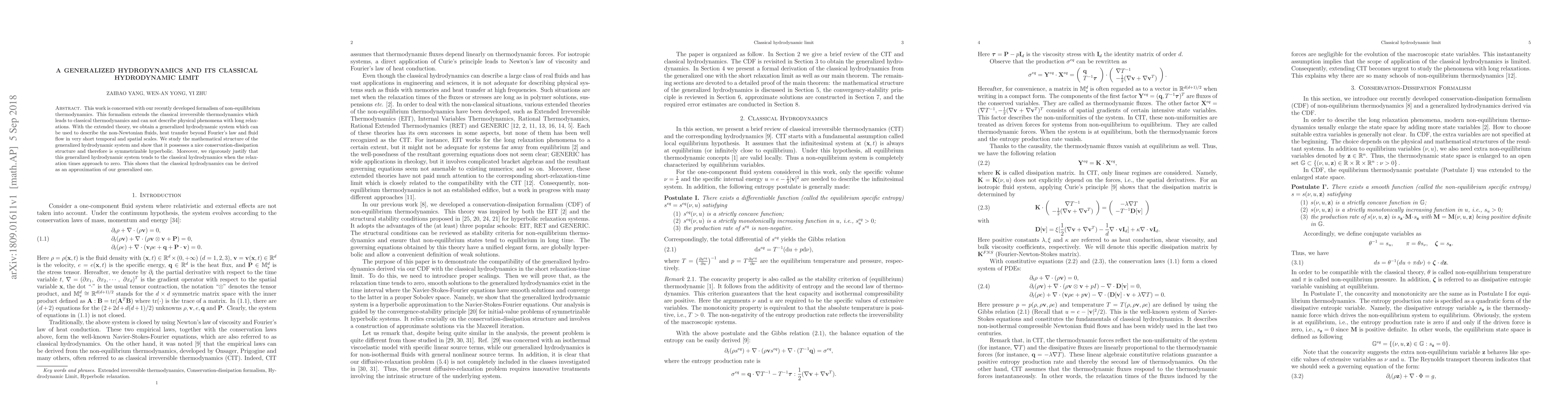 Researchers developed a generalized hydrodynamic system to describe non-equilibrium thermodynamics, showing it tends towards classical hydrodynamics as relaxation times approach zero.