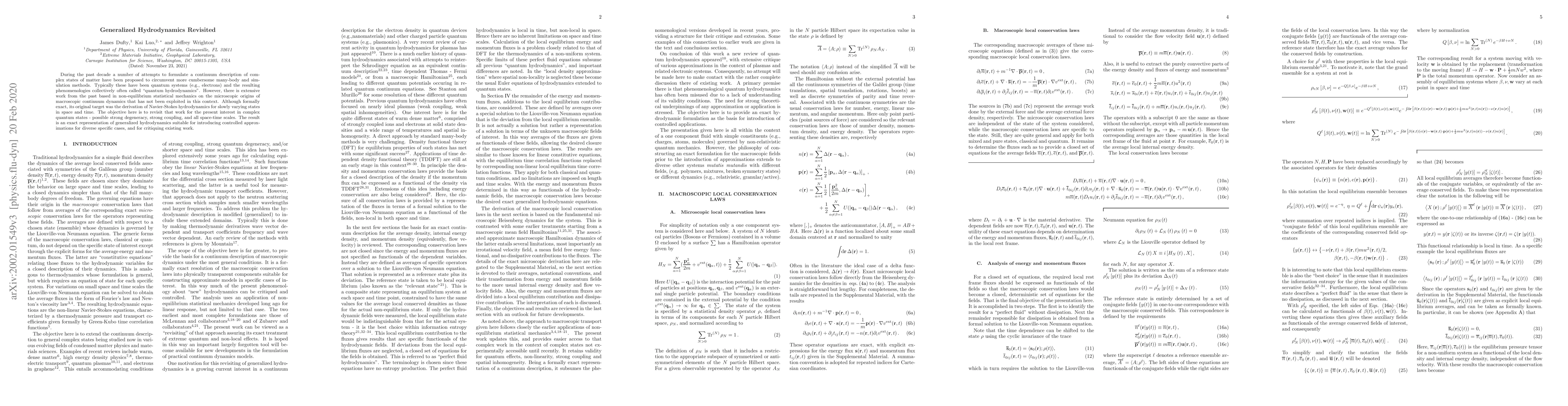 During the past decade a number of attempts to formulate a continuum description of complex states of matter have been proposed to circumvent more cumbersome many-body and simulation methods. Typically these have been quantum systems (e.g., electrons) and the resulting phenomenologies collectively often called "quantum hydrodynamics". However, there is extensive work from the past based in non-equilibrium statistical mechanics on the microscopic origins of macroscopic continuum dynamics that has not been exploited in this context. Although formally exact, its original target was the derivation of Navier-Stokes hydrodynamics for slowly varying states in space and time. The objective here is to revisit that work for the present interest in complex quantum states - possible strong degeneracy, strong coupling, and all space-time scales. The result is an exact representation of generalized hydrodynamics suitable for introducing controlled approximations for diverse specific cases, and for critiquing existing work.