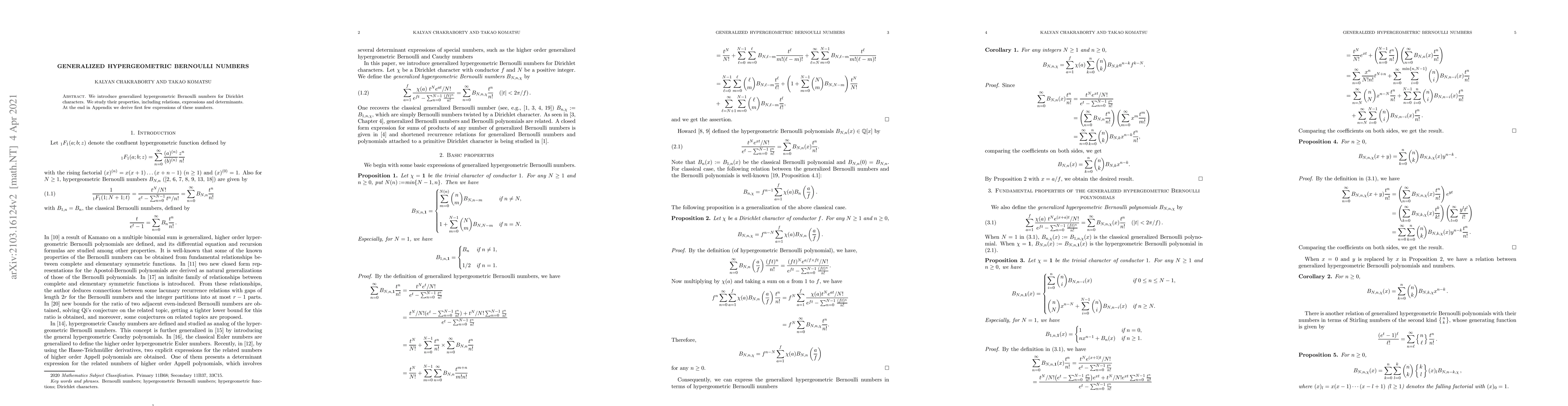 Researchers introduced generalized hypergeometric Bernoulli numbers for Dirichlet characters, studying their properties and relations to determine new expressions and determinants.