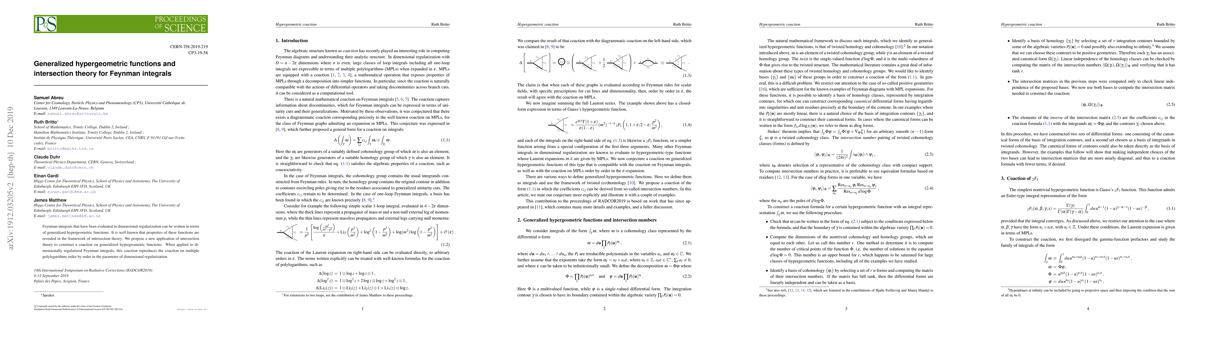 This paper proposes using intersection theory to construct a coaction on generalized hypergeometric functions, which reproduces the known coaction on multiple polylogarithms for dimensionally regularized Feynman integrals, thereby linking these mathematical structures.