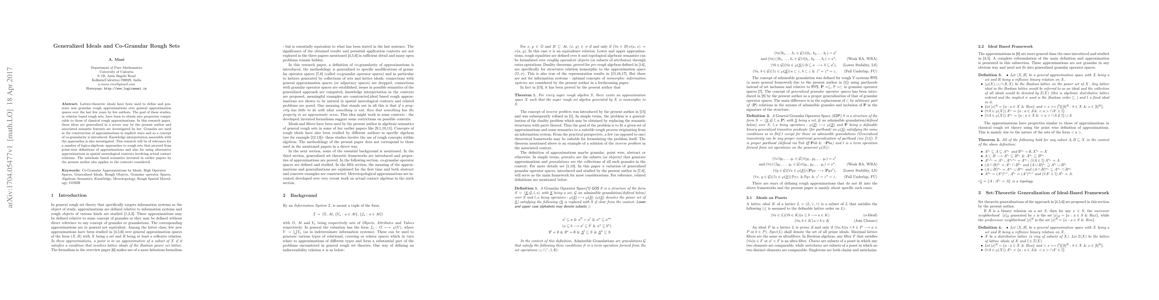 Lattice-theoretic ideals have been used to define and generate non granular rough approximations over general approximation spaces over the last few years by few authors. The goal of these studies, in relation based rough sets, have been to obtain nice properties comparable to those of classical rough approximations. In this research paper, these ideas are generalized in a severe way by the present author and associated semantic features are investigated by her. Granules are used in the construction of approximations in implicit ways and so a concept of co-granularity is introduced. Knowledge interpretation associable with the approaches is also investigated. This research will be of relevance for a number of logico-algebraic approaches to rough sets that proceed from point-wise definitions of approximations and also for using alternative approximations in spatial mereological contexts involving actual contact relations. The antichain based semantics invented in earlier papers by the present author also applies to the contexts considered.