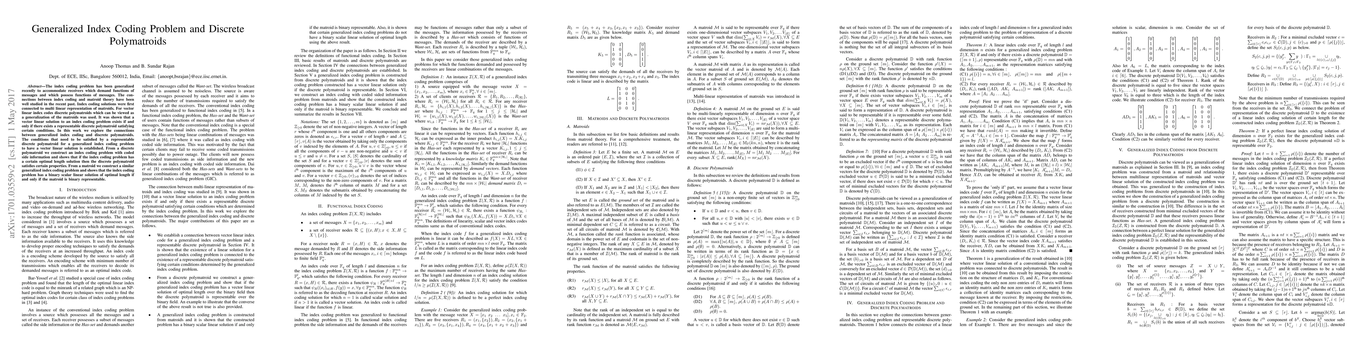 This paper explores the generalized index coding problem's connections to discrete polymatroids, establishing conditions for vector linear solutions. It demonstrates that a generalized index coding problem has a vector linear solution if a representable discrete polymatroid satisfies specific conditions, and it links matroids to binary scalar linear solutions.