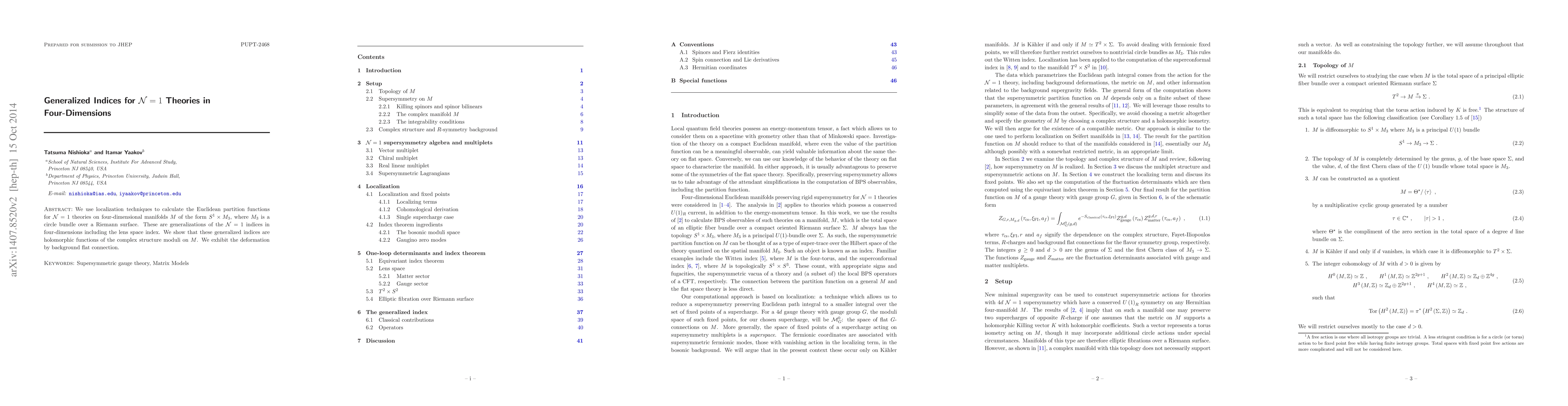 Summary: This paper calculates Euclidean partition functions for $\mathcal{N}=1$ theories in four dimensions using localization techniques, revealing generalized indices that are holomorphic in the complex structure moduli and showing their deformation by flat connections.