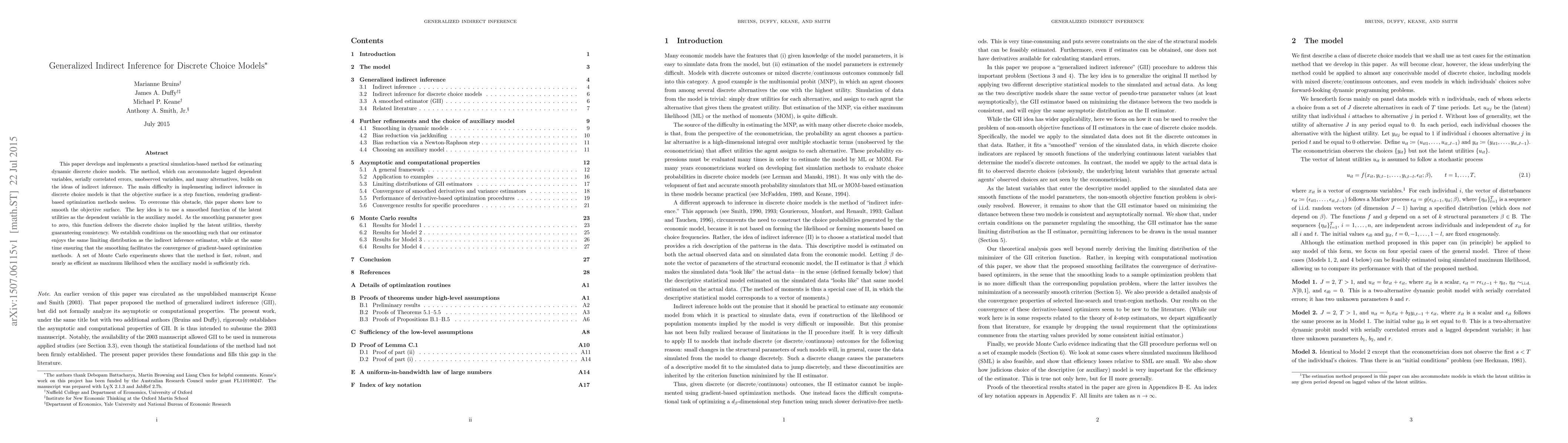 This paper develops and implements a practical simulation-based method for estimating dynamic discrete choice models. The method, which can accommodate lagged dependent variables, serially correlated errors, unobserved variables, and many alternatives, builds on the ideas of indirect inference. The main difficulty in implementing indirect inference in discrete choice models is that the objective surface is a step function, rendering gradient-based optimization methods useless. To overcome this obstacle, this paper shows how to smooth the objective surface. The key idea is to use a smoothed function of the latent utilities as the dependent variable in the auxiliary model. As the smoothing parameter goes to zero, this function delivers the discrete choice implied by the latent utilities, thereby guaranteeing consistency. We establish conditions on the smoothing such that our estimator enjoys the same limiting distribution as the indirect inference estimator, while at the same time ensuring that the smoothing facilitates the convergence of gradient-based optimization methods. A set of Monte Carlo experiments shows that the method is fast, robust, and nearly as efficient as maximum likelihood when the auxiliary model is sufficiently rich.