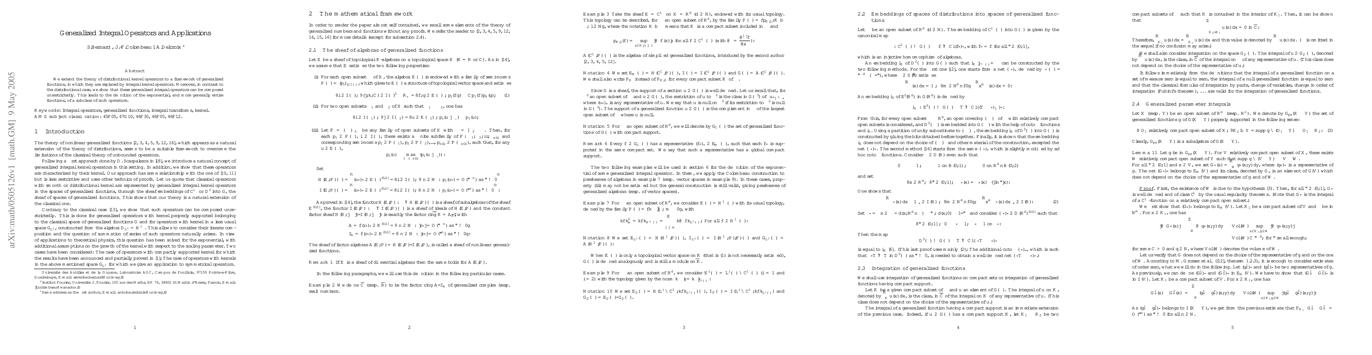 This paper extends the theory of distributional kernel operators to a framework of generalized integral operators, allowing unrestricted composition and leading to the definition of entire functions.