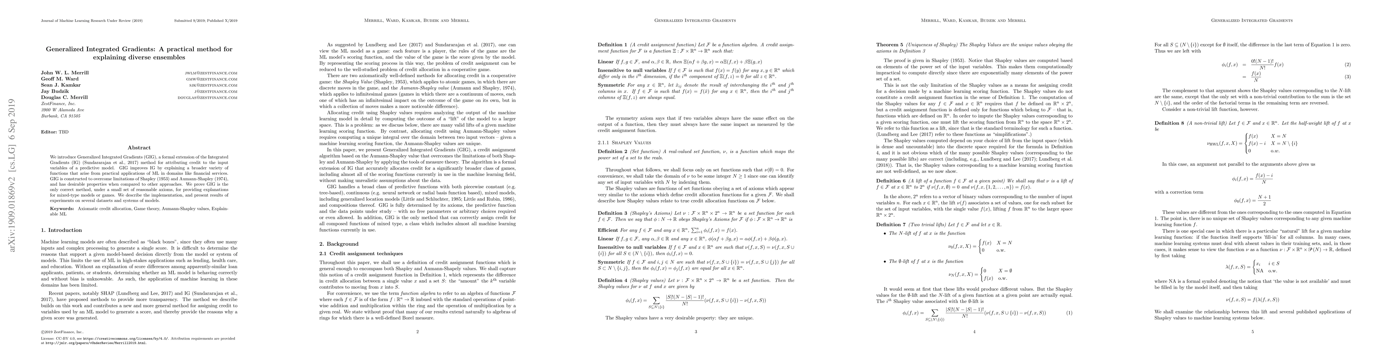Generalized Integrated Gradients (GIG) extends the Integrated Gradients method to explain diverse machine learning ensembles, overcoming limitations of existing approaches like Shapley and Aumann-Shapley. GIG is proven to be the only correct method under certain axioms for mixed-type models.