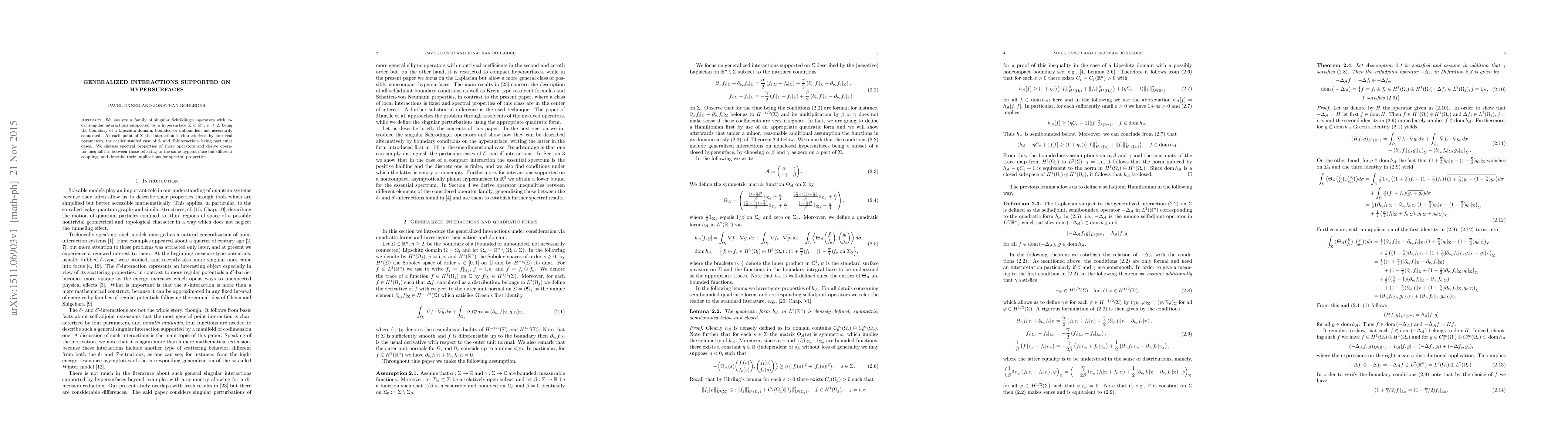 We analyze a family of singular Schr\"odinger operators with local singular interactions supported by a hypersurface $\Sigma \subset \mathbb{R}^n, n \ge 2$, being the boundary of a Lipschitz domain, bounded or unbounded, not necessarily connected. At each point of $\Sigma$ the interaction is characterized by four real parameters, the earlier studied case of $\delta$- and $\delta'$-interactions being particular cases. We discuss spectral properties of these operators and derive operator inequalities between those referring to the same hypersurface but different couplings and describe their implications for spectral properties.