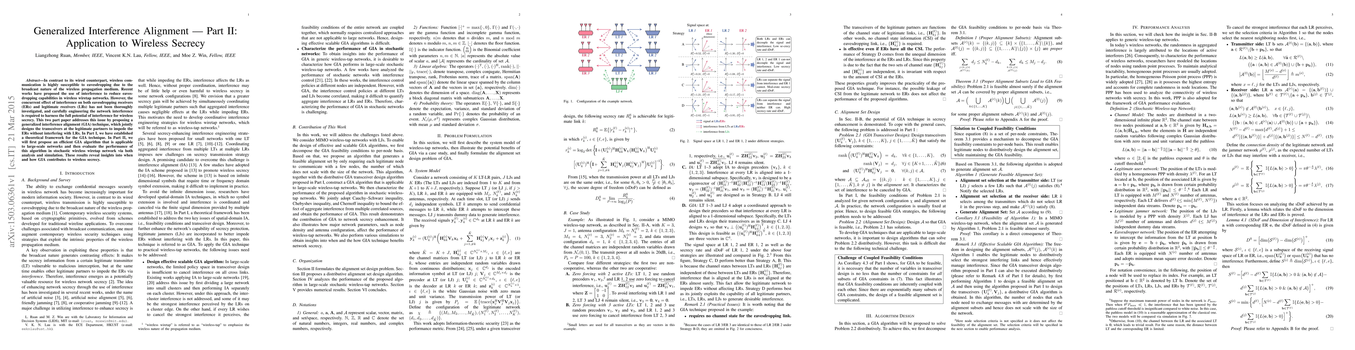 In contrast to its wired counterpart, wireless communication is highly susceptible to eavesdropping due to the broadcast nature of the wireless propagation medium. Recent works have proposed the use of interference to reduce eavesdropping capabilities in wireless wiretap networks. However, the concurrent effect of interference on both eavesdropping receivers (ERs) and legitimate receivers (LRs) has not been thoroughly investigated, and carefully engineering the network interference is required to harness the full potential of interference for wireless secrecy. This two part paper addresses this issue by proposing a generalized interference alignment (GIA) technique, which jointly designs the transceivers at the legitimate partners to impede the ERs without interfering with LRs. In Part I, we have established a theoretical framework for the GIA technique. In Part II, we will first propose an efficient GIA algorithm that is applicable to large-scale networks and then evaluate the performance of this algorithm in stochastic wireless wiretap network via both analysis and simulation. These results reveal insights into when and how GIA contributes to wireless secrecy.