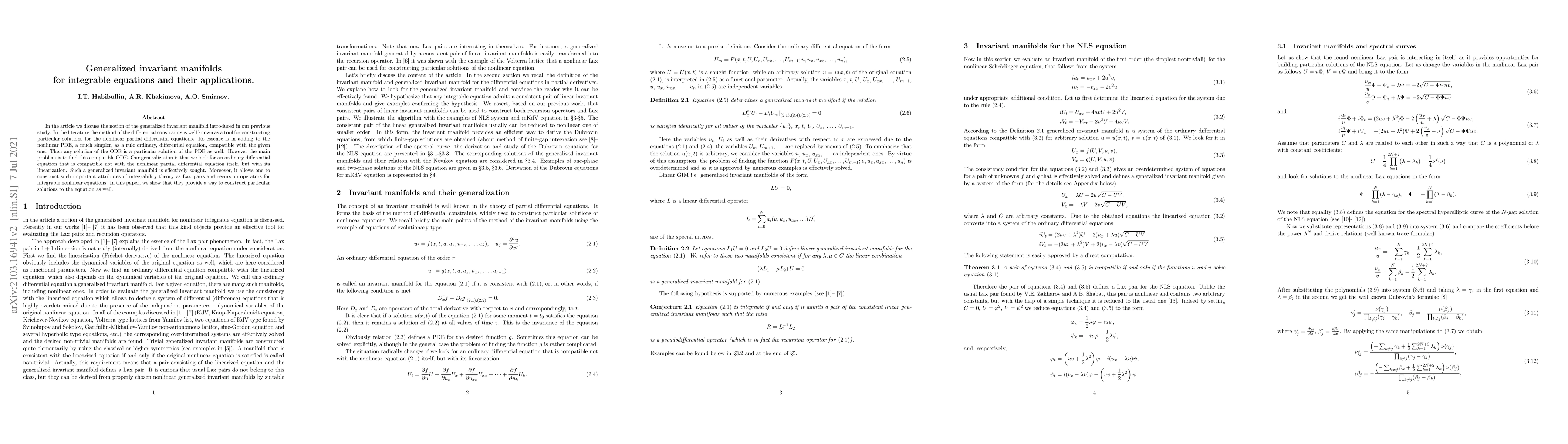 Researchers develop a method to construct particular solutions for nonlinear equations by using generalized invariant manifolds that are compatible with the linearization of these equations, enabling the creation of Lax pairs and recursion operators.