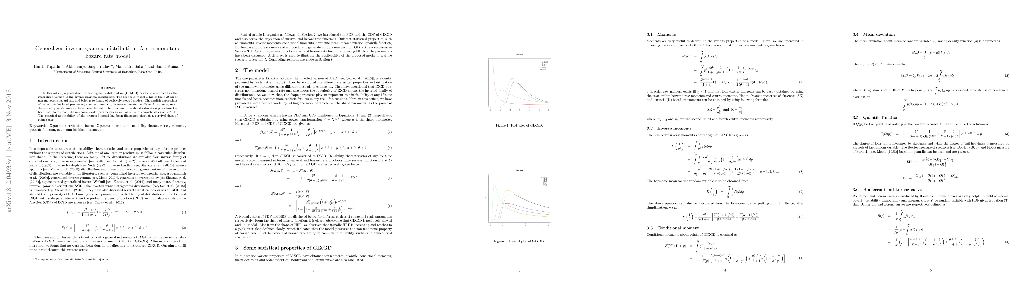 This paper introduces the generalized inverse xgamma distribution (GIXGD), a positively skewed model with a non-monotone hazard rate. It derives distributional properties and uses maximum likelihood estimation to estimate parameters, demonstrating its applicability with guinea pig survival data.