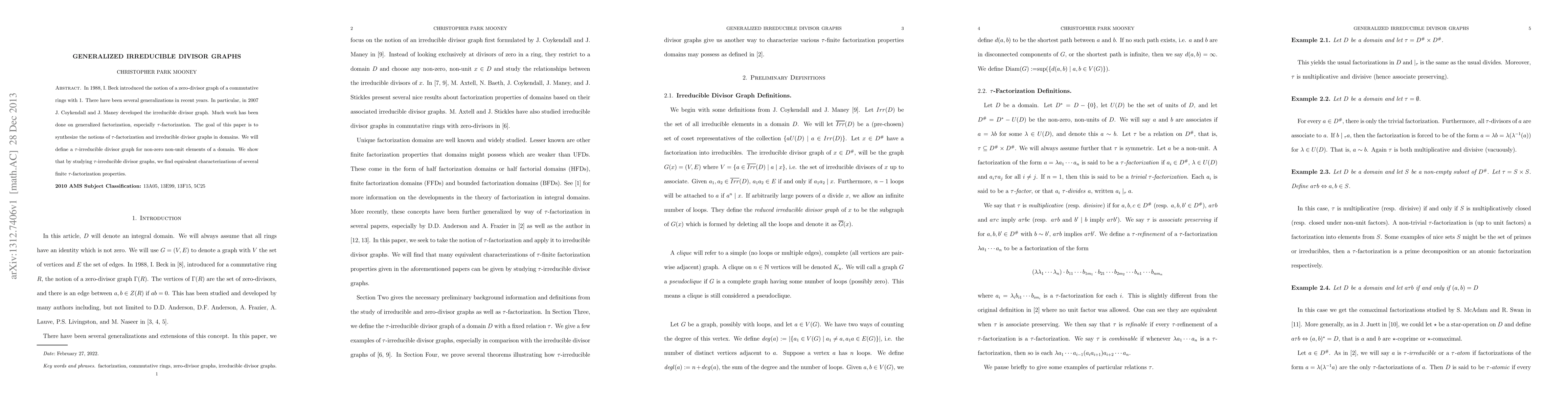 In 1988, I. Beck introduced the notion of a zero-divisor graph of a commutative rings with $1$. There have been several generalizations in recent years. In particular, in 2007 J. Coykendall and J. Maney developed the irreducible divisor graph. Much work has been done on generalized factorization, especially $\tau$-factorization. The goal of this paper is to synthesize the notions of $\tau$-factorization and irreducible divisor graphs in domains. We will define a $\tau$-irreducible divisor graph for non-zero non-unit elements of a domain. We show that by studying $\tau$-irreducible divisor graphs, we find equivalent characterizations of several finite $\tau$-factorization properties.