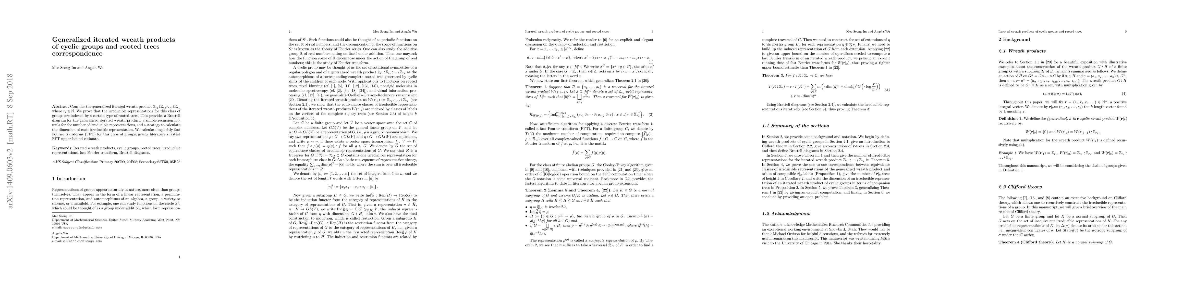 This paper explores the generalized iterated wreath products of cyclic groups, proving that their irreducible representations are indexed by rooted trees. It provides a Bratteli diagram, a recursion formula for the number of representations, and an efficient method for calculating their dimensions, achieving the fastest FFT upper bound estimate.