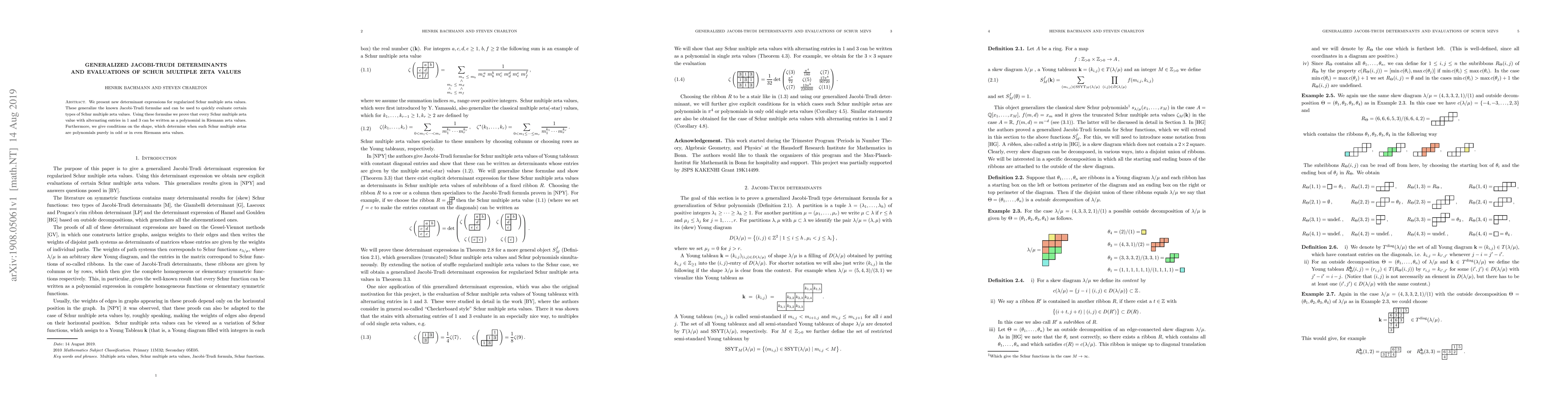 This paper introduces generalized Jacobi-Trudi determinant expressions for evaluating regularized Schur multiple zeta values, showing they can represent alternating Schur multiple zeta values as polynomials in Riemann zeta values, with conditions determining if these are purely odd or even.