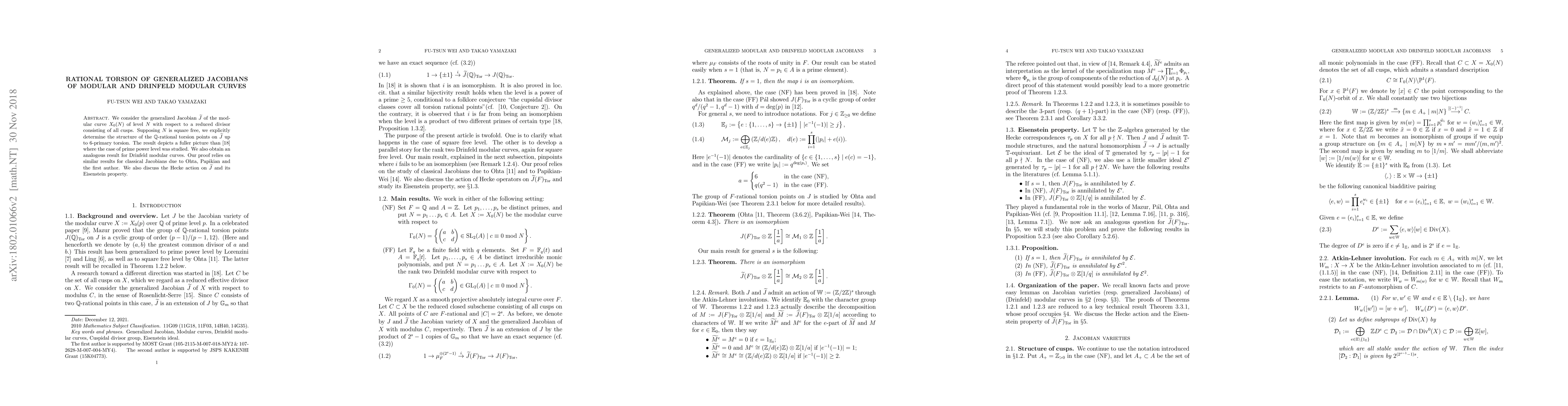 This paper determines the structure of $\mathbb{Q}$-rational torsion points on the generalized Jacobian $\widetilde{J}$ of modular curves $X_0(N)$ and Drinfeld modular curves for square-free $N$, showing significant differences from previous studies at prime power levels. The proof leverages classical Jacobian results and discusses the Hecke action and Eisenstein property.