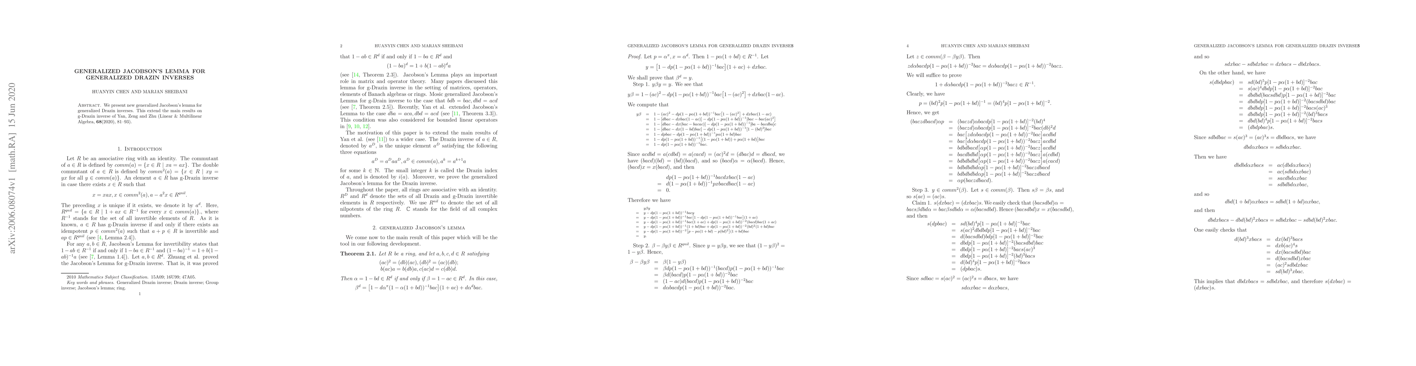 Summary: This paper extends the generalized Jacobson's lemma to the realm of generalized Drazin inverses, building on previous work by Yan, Zeng, and Zhu. The new results provide further insights into the properties of g-Drazin inverses.