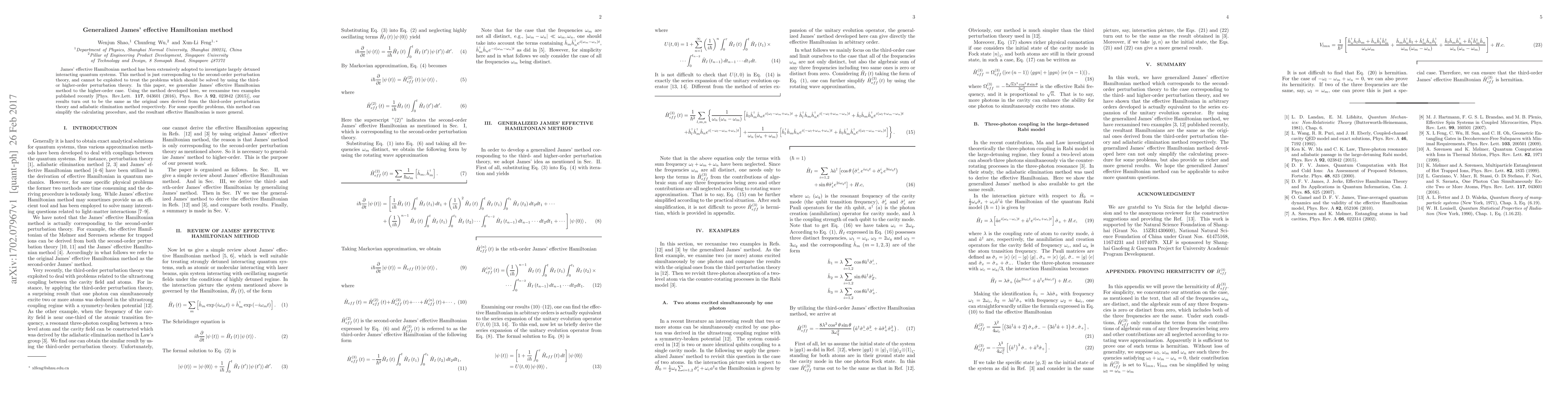 This paper generalizes James' effective Hamiltonian method to higher-order perturbation theory, allowing it to address problems previously solved only by third-order perturbation methods. The new method simplifies calculations and produces a more general effective Hamiltonian, as demonstrated by reexamining two recent examples.