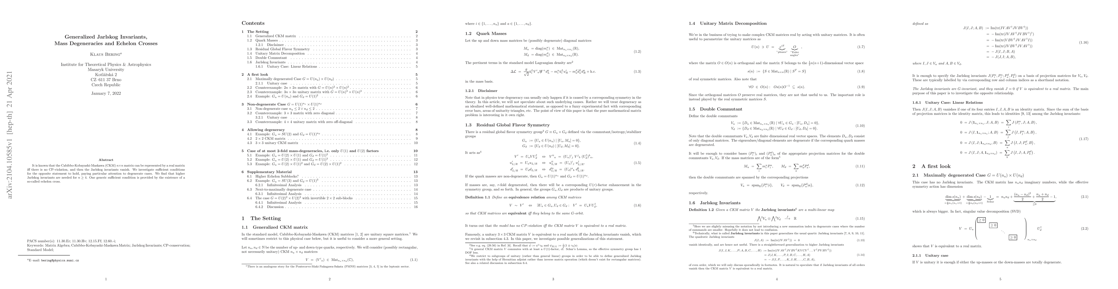 Summary: This paper explores the conditions under which the Cabibbo-Kobayashi-Maskawa matrix exhibits CP-violation, emphasizing the role of generalized Jarlskog invariants in detecting such violations, particularly in scenarios with mass degeneracies, and identifies the existence of an echelon cross as a sufficient condition for higher-order invariants in matrices of size $n\geq 4$.