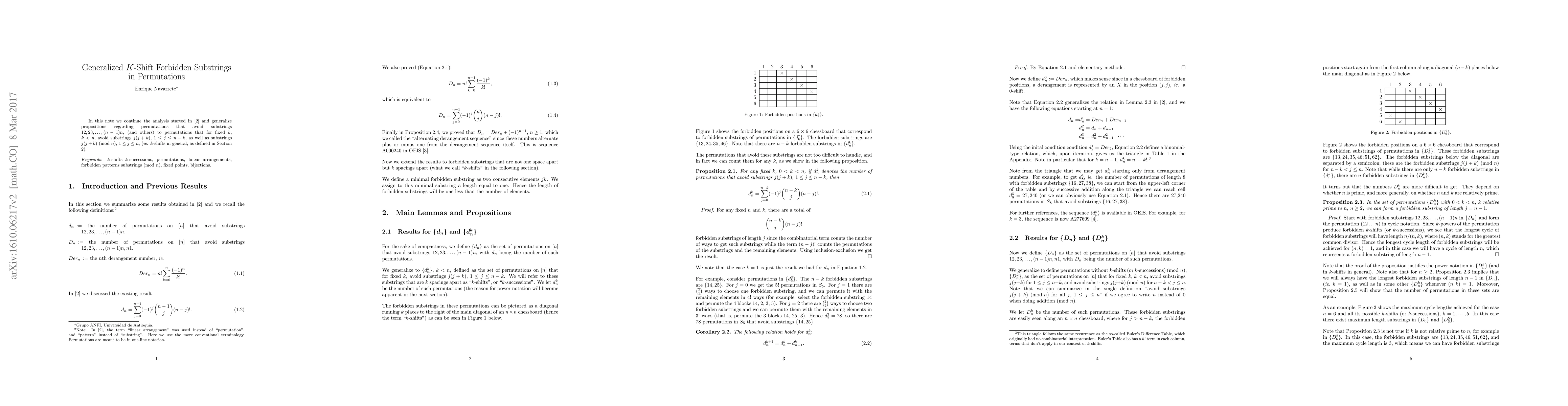 This paper analyzes permutations that avoid specific substrings, namely j(j+k) and j(j+k) (mod n), and derives recursions for counting these permutations, with special consideration for cases where n and k are relatively prime. The results depend on whether n is prime or not.