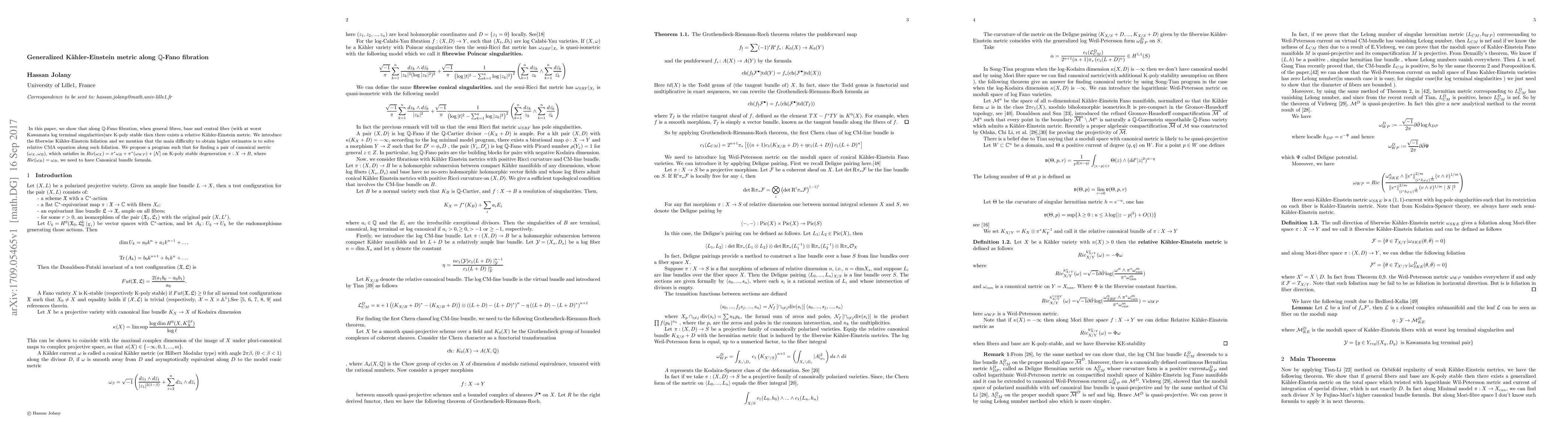 In this paper, we show that along $\mathbb Q$-Fano fibration, when general fibres, base and central fiber (with at worst Kawamata log terminal singularities)are K-poly stable then there exists a relative K\"ahler-Einstein metric. We introduce the fiberwise K\"ahler-Einstein foliation and we mention that the main difficulty to obtain higher estimates is to solve relative CMA equation along such foliation. We propose a program such that for finding a pair of canonical metric $(\omega_X,\omega_B)$, which satisfies in $$Ric(\omega_X)=\pi^*\omega_B+\pi^*(\omega_{WP})+[\mathcal N]$$ on K-poly stable degeneration $\pi:X\to B$, where $Ric(\omega_B)=\omega_B$, we need to have Canonical bundle formula.