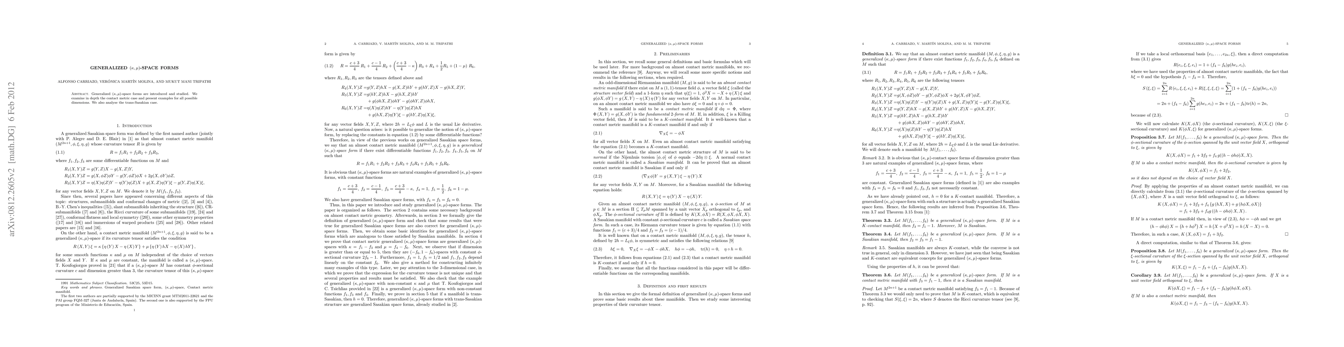 This paper introduces and explores generalized (\kappa,\mu)-space forms, focusing on the contact metric case and trans-Sasakian scenarios, providing examples across various dimensions.