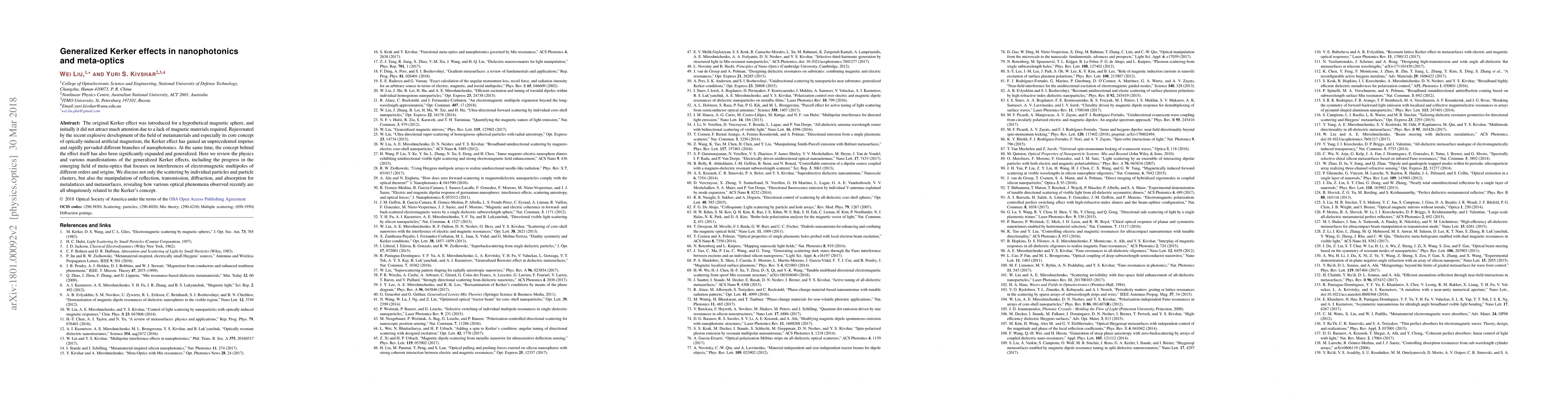 This paper reviews the expanded physics and manifestations of the generalized Kerker effect in nanophotonics and meta-optics, focusing on the manipulation of electromagnetic properties through metamaterials and metasurfaces, and the implications for scattering, reflection, transmission, diffraction, and absorption.