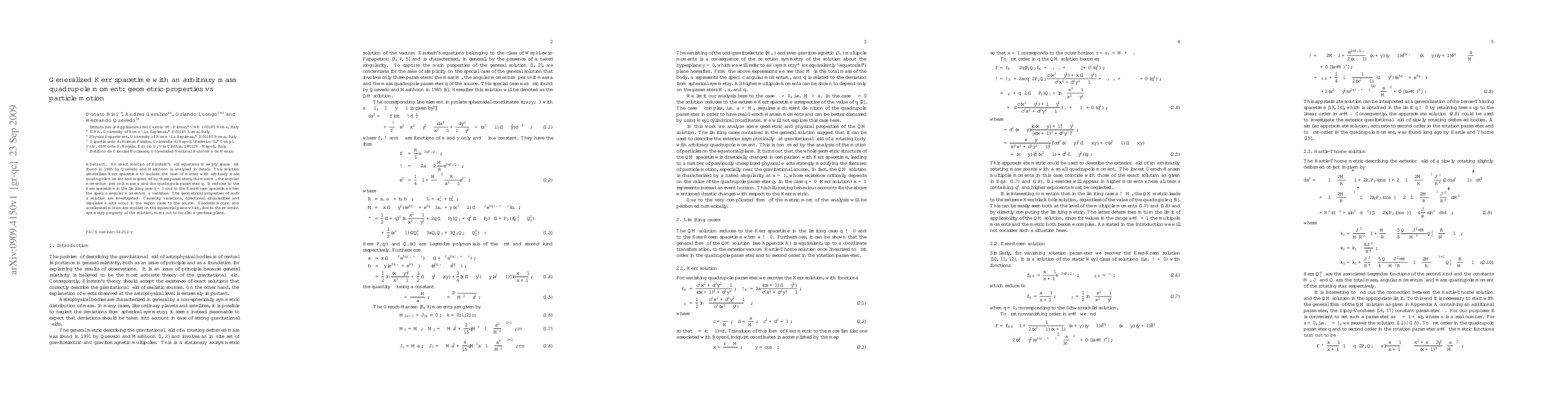 Researchers studied a generalized Kerr spacetime solution that includes matter with arbitrary mass quadrupole moment, finding geometrical properties like causality violations and repulsive effects near the source, as well as geodesic motion on the equatorial plane.