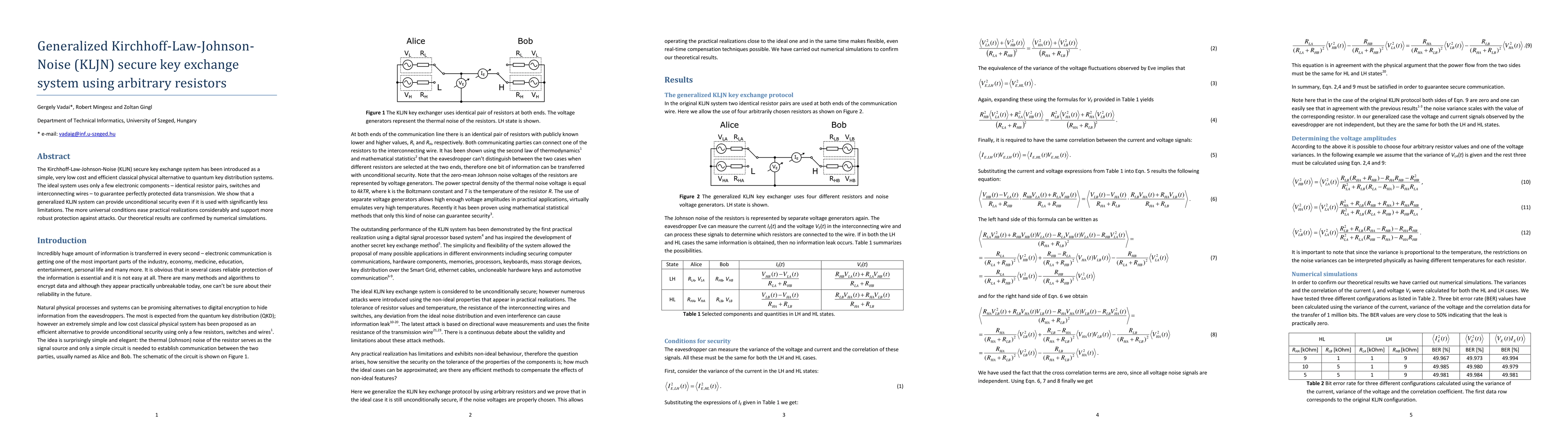 The paper proposes a generalized KLJN secure key exchange system using arbitrary resistors, offering unconditional security with fewer limitations and practical ease, supported by numerical simulations. This approach provides a robust, low-cost alternative to quantum key distribution.