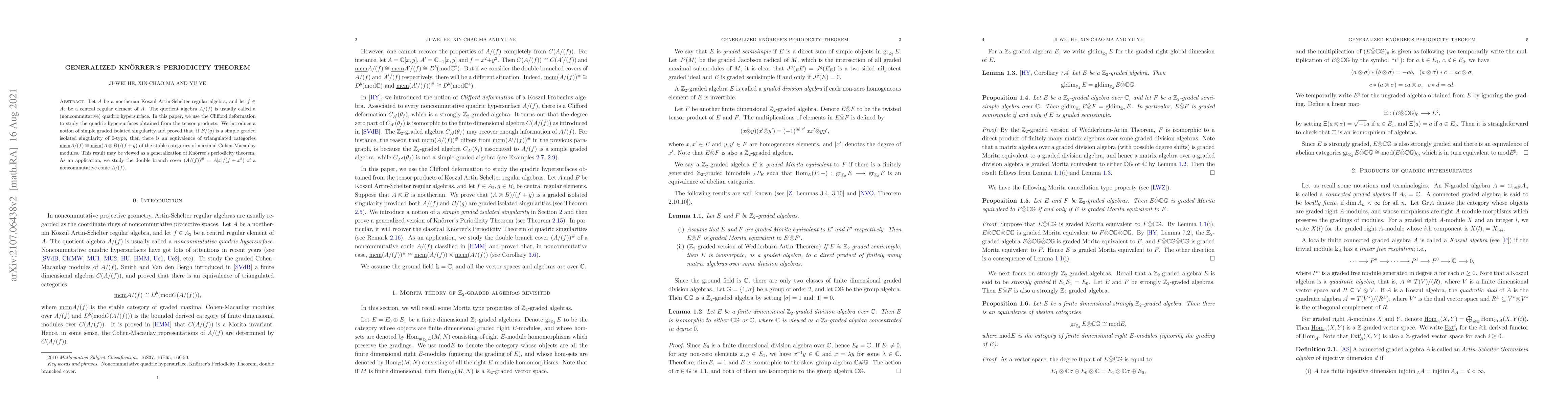 Let $A$ be a noetherian Koszul Artin-Schelter regular algebra, and let $f\in A_2$ be a central regular element of $A$. The quotient algebra $A/(f)$ is usually called a (noncommutative) quadric hypersurface. In this paper, we use the Clifford deformation to study the quadric hypersurfaces obtained from the tensor products. We introduce a notion of simple graded isolated singularity and proved that, if $B/(g)$ is a simple graded isolated singularity of 0-type, then there is an equivalence of triangulated categories $\underline{\text{mcm}}\,A/(f)\cong\underline{\text{mcm}}\,(A\otimes B)/(f+g)$ of the stable categories of maximal Cohen-Macaulay modules. This result may be viewed as a generalization of Kn\"{o}rrer's periodicity theorem. As an application, we study the double branch cover $(A/(f))^\#=A[x]/(f+x^2)$ of a noncommutative conic $A/(f)$.