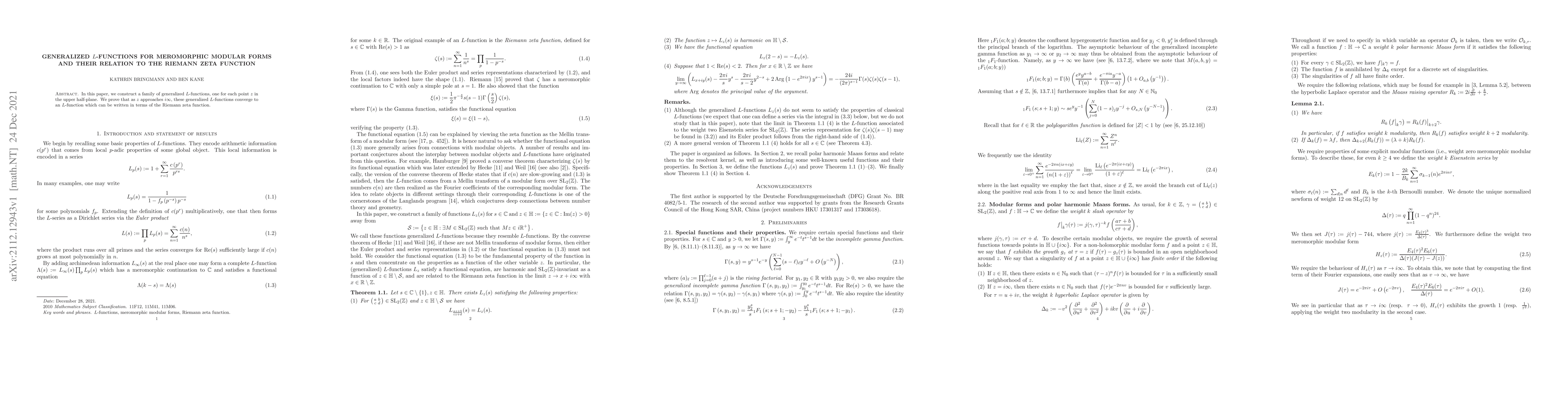 Researchers develop a family of generalized L-functions that converge to an L-function related to the Riemann zeta function as z approaches infinity.