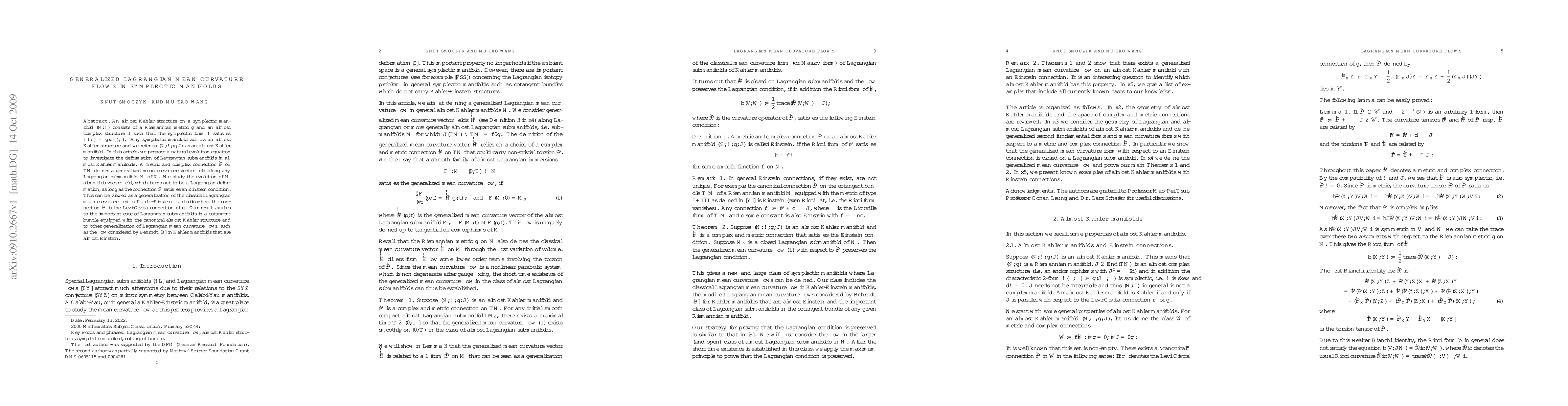 This paper proposes a generalized Lagrangian mean curvature flow for deformations of Lagrangian submanifolds in almost Kähler manifolds, extending classical mean curvature flows in Kähler-Einstein settings. The evolution is defined using a metric and complex connection under an Einstein condition.
