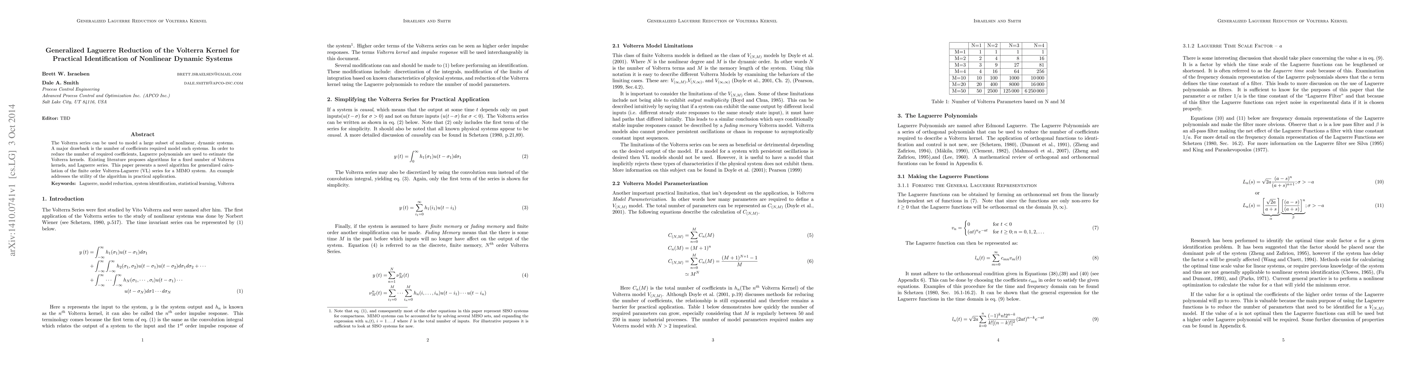 The Volterra series can be used to model a large subset of nonlinear, dynamic systems. A major drawback is the number of coefficients required model such systems. In order to reduce the number of required coefficients, Laguerre polynomials are used to estimate the Volterra kernels. Existing literature proposes algorithms for a fixed number of Volterra kernels, and Laguerre series. This paper presents a novel algorithm for generalized calculation of the finite order Volterra-Laguerre (VL) series for a MIMO system. An example addresses the utility of the algorithm in practical application.