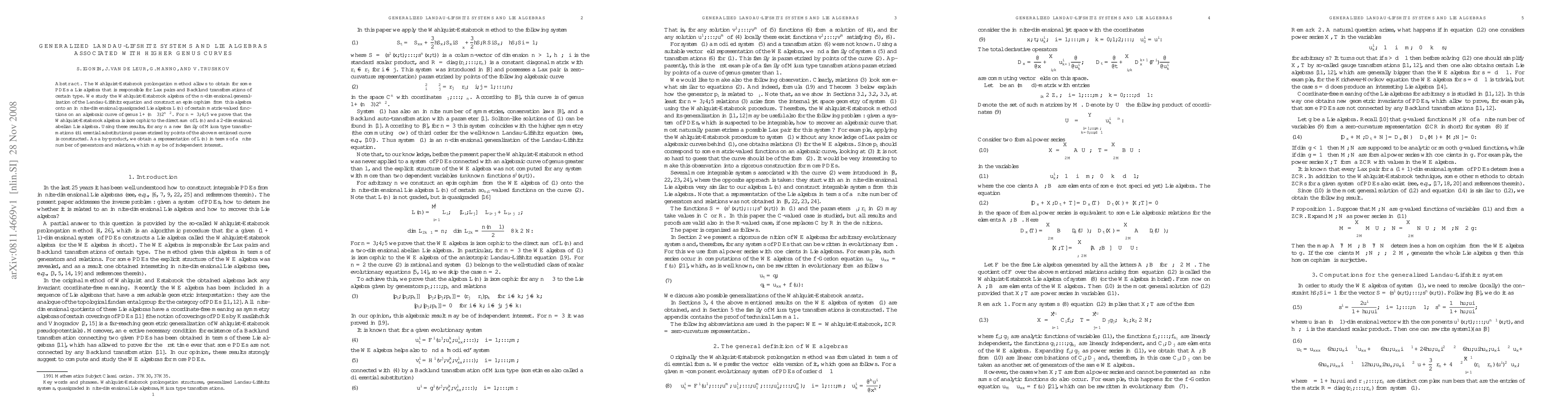 This paper explores the Wahlquist-Estabrook prolongation method to derive Lie algebras for generalized Landau-Lifshitz systems, establishing an epimorphism to a quasigraded Lie algebra associated with higher genus curves. For n=3,4,5, it shows the algebra's isomorphism to the direct sum of L(n) and a 2-dimensional abelian Lie algebra, leading to new Miura type transformations.