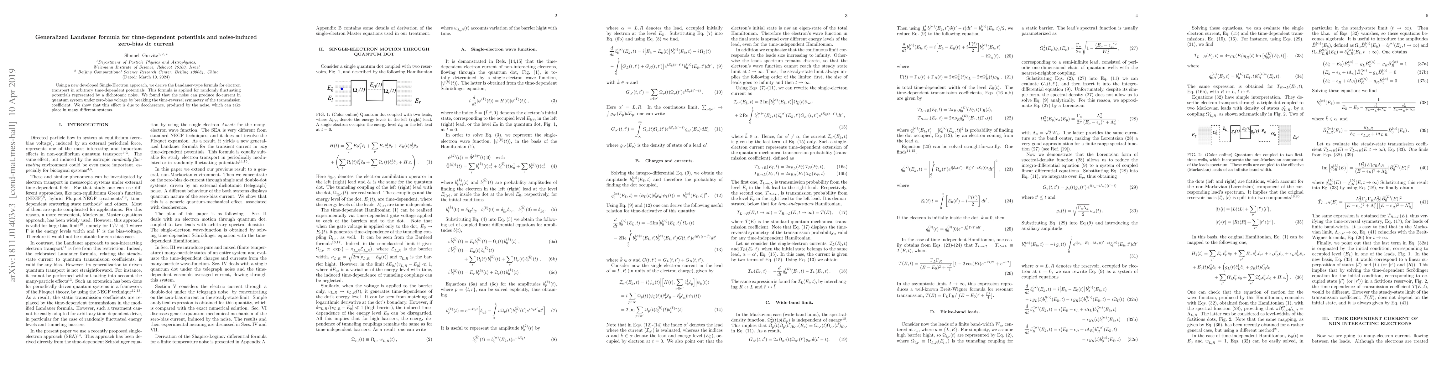 Researchers developed a new formula for electron transport in quantum systems with time-dependent potentials, finding that random noise can induce zero-bias DC current due to decoherence.