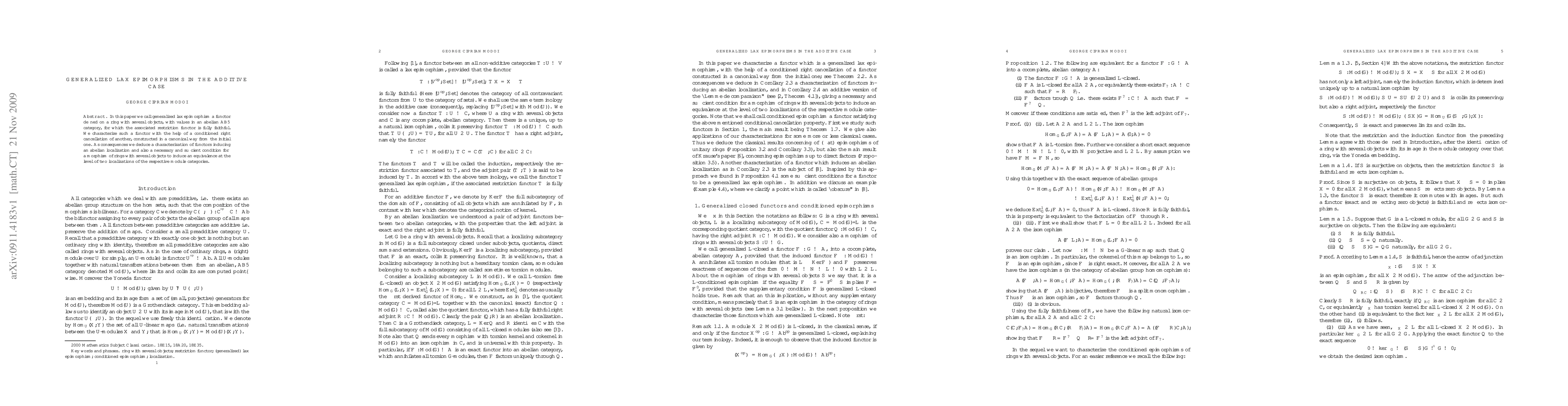 In this paper we call generalized lax epimorphism a functor defined on a ring with several objects, with values in an abelian AB5 category, for which the associated restriction functor is fully faithful. We characterize such a functor with the help of a conditioned right cancellation of another, constructed in a canonical way from the initial one. As consequences we deduce a characterization of functors inducing an abelian localization and also a necessary and sufficient condition for a morphism of rings with several objects to induce an equivalence at the level of two localizations of the respective module categories.