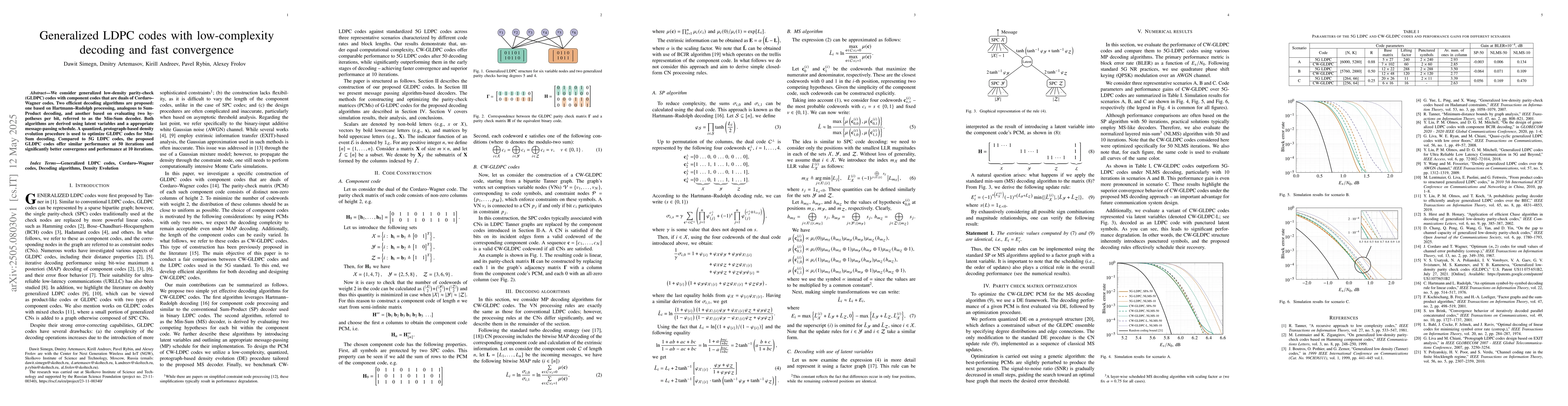 Researchers propose efficient decoding algorithms for generalized low-density parity-check codes with fast convergence, outperforming 5G LDPC codes in performance at lower iteration counts.