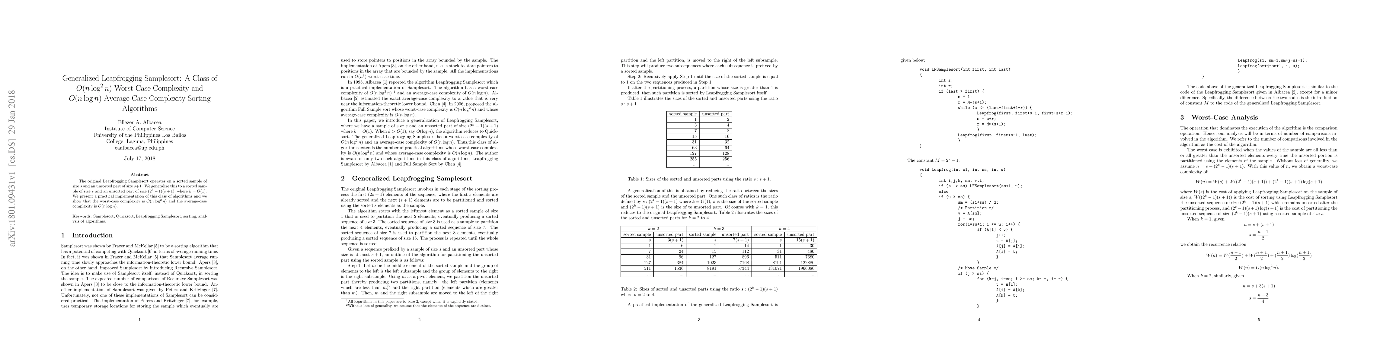 This paper generalizes Leapfrogging Samplesort to handle larger unsorted parts, achieving $O(n \log^2 n)$ worst-case complexity and $O(n \log n)$ average-case complexity. It presents a practical implementation of this class of sorting algorithms.