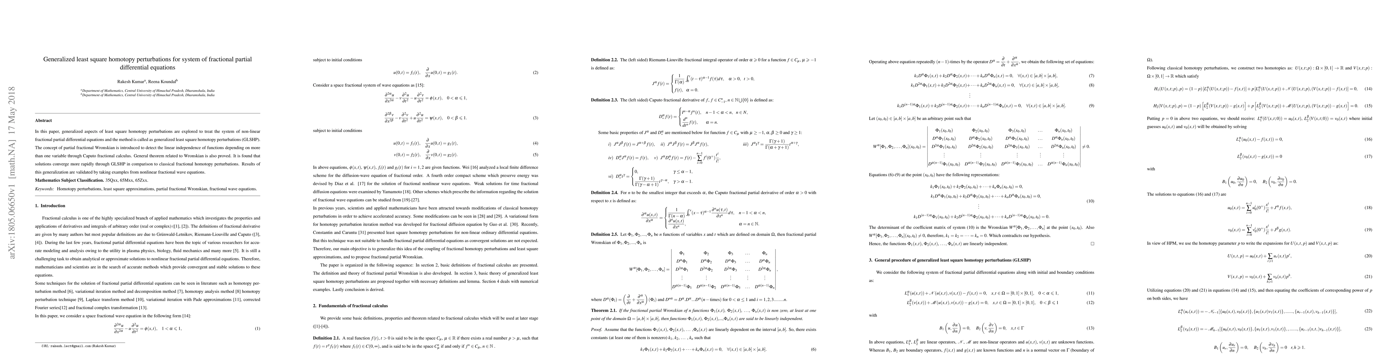 The research introduces Generalized Least Square Homotopy Perturbations (GLSHP) for solving systems of non-linear fractional partial differential equations, utilizing the concept of partial fractional Wronskian for linear independence detection.