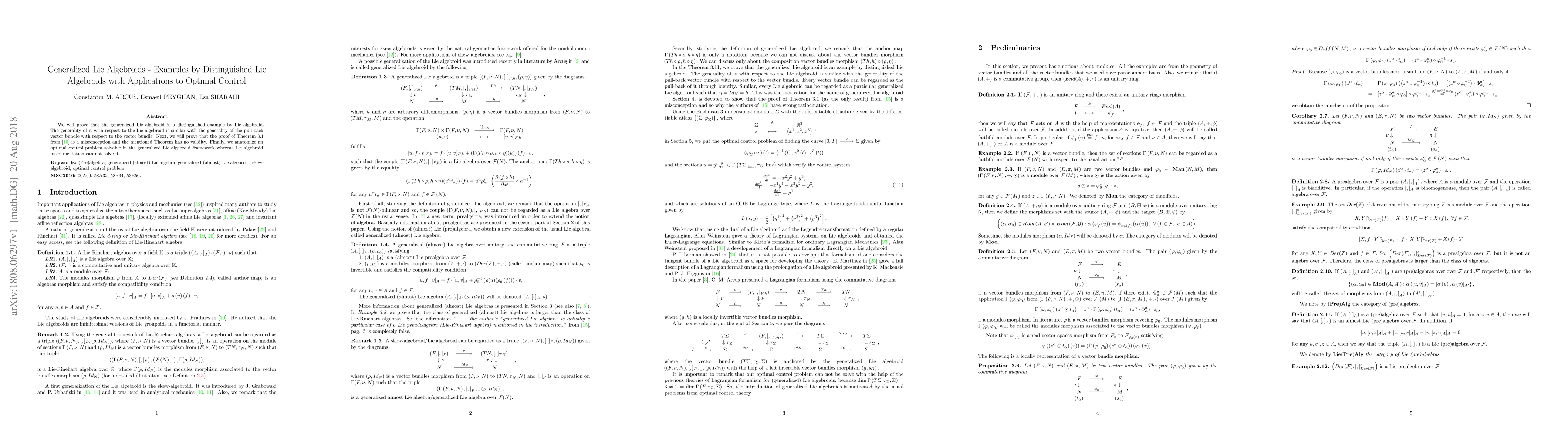 This paper introduces generalized Lie algebroids as a more general framework than traditional Lie algebroids for optimal control problems, highlighting their limitations in solving specific cases.