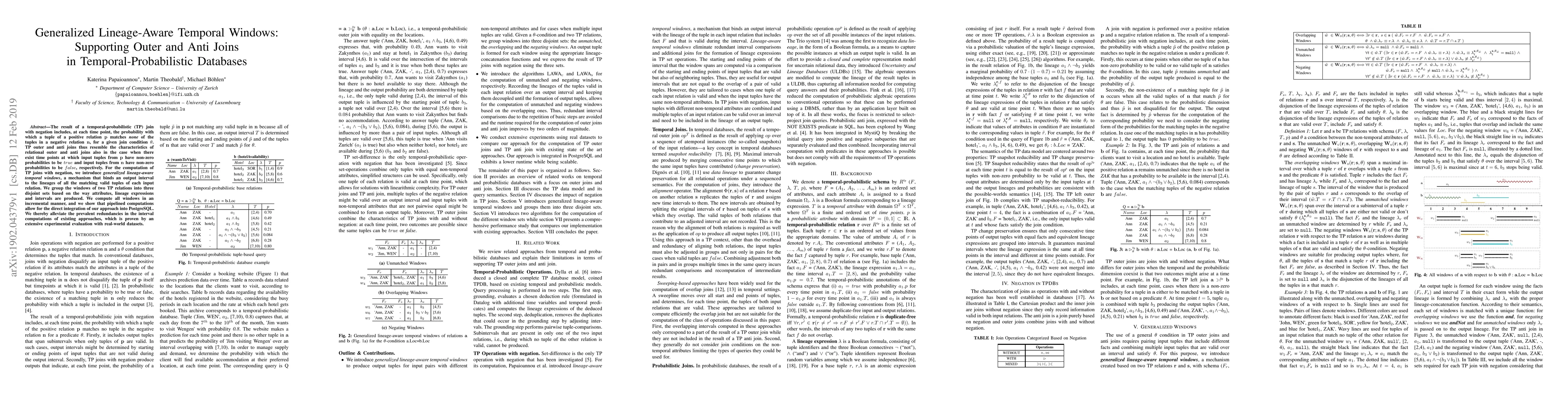 The paper presents generalized lineage-aware temporal windows, algorithms for their computation (LAWAU and LAWAN), and their integration into PostgreSQL, enabling efficient TP joins with negation.