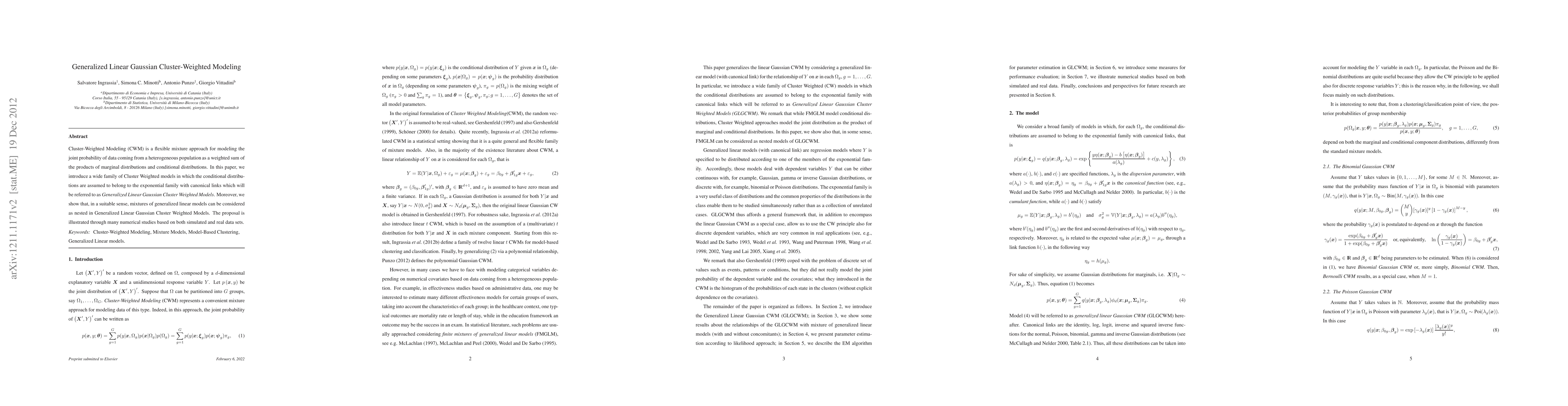 This paper introduces Generalized Linear Gaussian Cluster Weighted Models, a flexible mixture approach where conditional distributions belong to the exponential family, extending Cluster-Weighted Modeling. It demonstrates the nested nature of mixtures of generalized linear models within these new models, supported by numerical studies on both simulated and real data.
