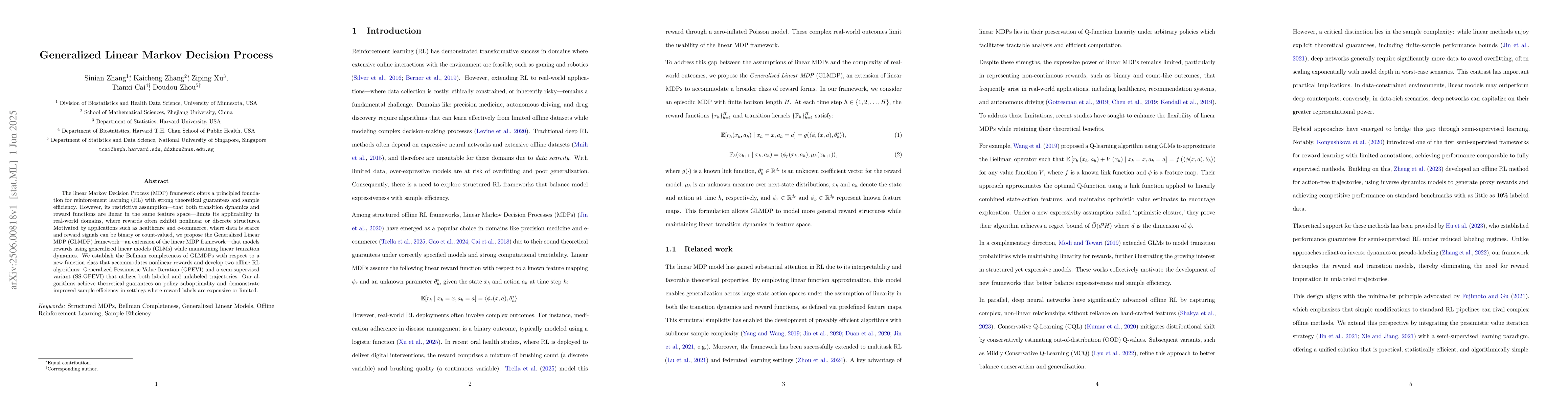 The paper extends the linear MDP framework to accommodate nonlinear reward structures via generalized linear models, providing theoretical foundations and improved sample efficiency for offline RL in domains with limited reward data.