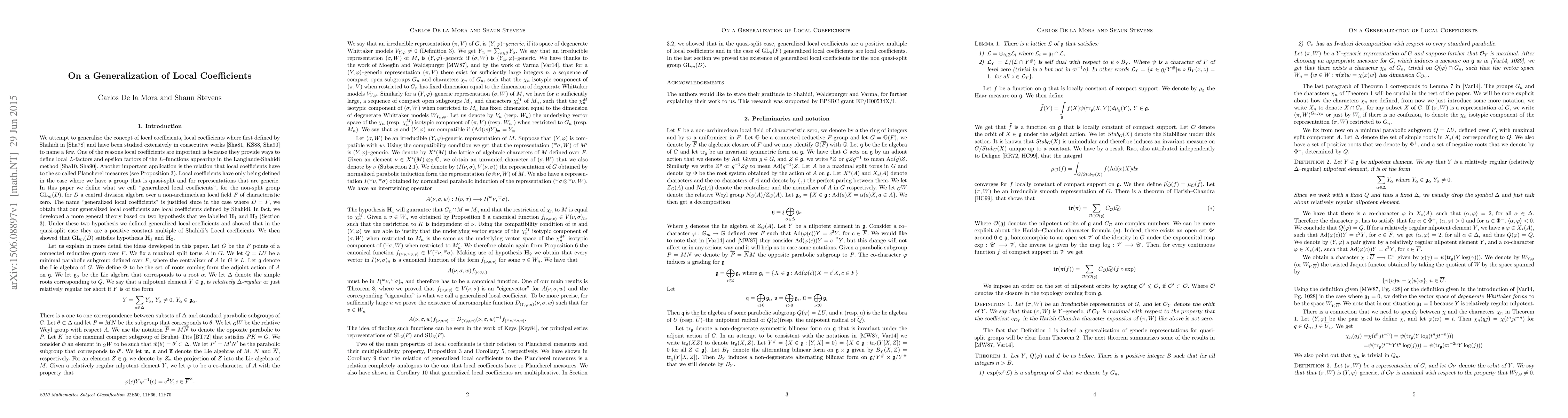 In this paper we showed that under two assumptions we are able to define interesting functions that we call generalized local coefficients. We showed that in the quasi-split case generalized local coefficients are up to a positive constant the same as Shahidi's local coefficients. We provide a proof that the non quasi-split group $GL_m(D)$, for a central division algebra $D$ satisfies those assumptions. We also showed that generalized local coefficients satisfy nice properties, like the relation to Plancherel measures and multiplicativity inherited by that of intertwining operators. Generalized local coefficients are only defined for representations that are $(Y,\varphi)$-generic which is a generalization of generic representations in the quasi-split case. Here $Y$ denotes a nilpotent element in the Lie algebra of the group and $\varphi$ is a co-character related to $Y$.