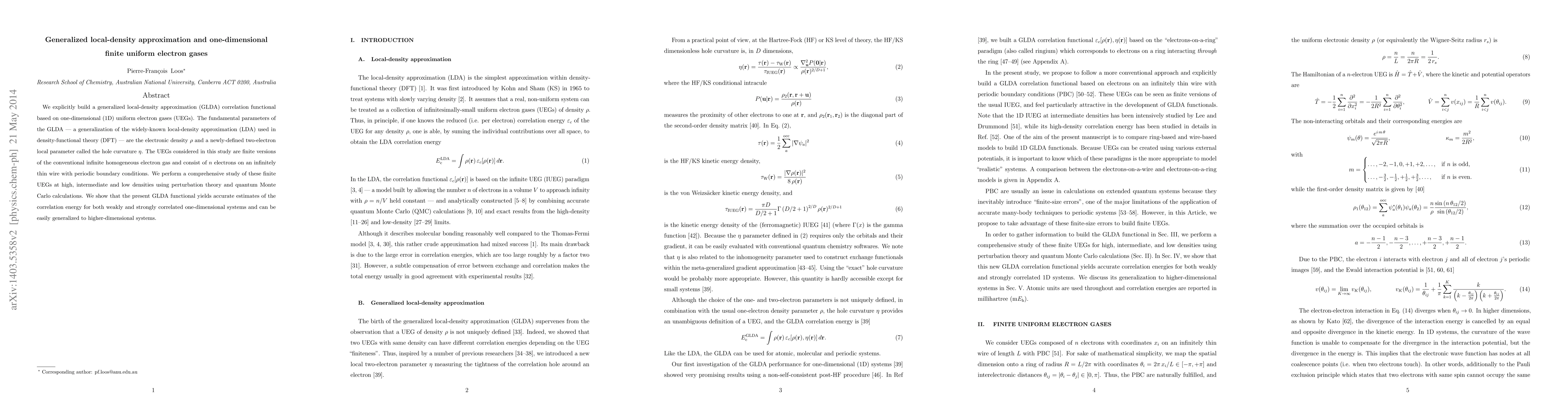 This paper develops a generalized local-density approximation (GLDA) correlation functional based on one-dimensional finite uniform electron gases (UEGs). The GLDA, which generalizes the local-density approximation (LDA) in density-functional theory (DFT), incorporates the electronic density and a new parameter called hole curvature. The study demonstrates the GLDA's accuracy in estimating correlation energy across various densities and suggests its potential for higher-dimensional systems.