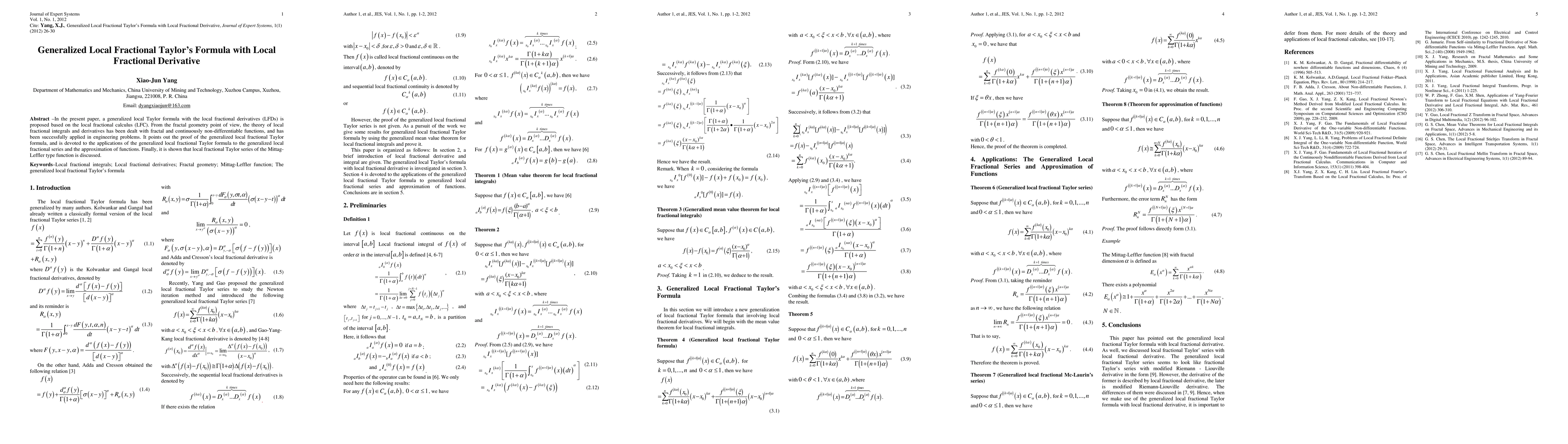 This paper proposes a generalized local fractional Taylor formula using local fractional derivatives based on local fractional calculus. It aims to apply this theory to fractal and non-differentiable functions, demonstrating its utility in engineering problems and discussing the approximation of functions via local fractional Taylor series.