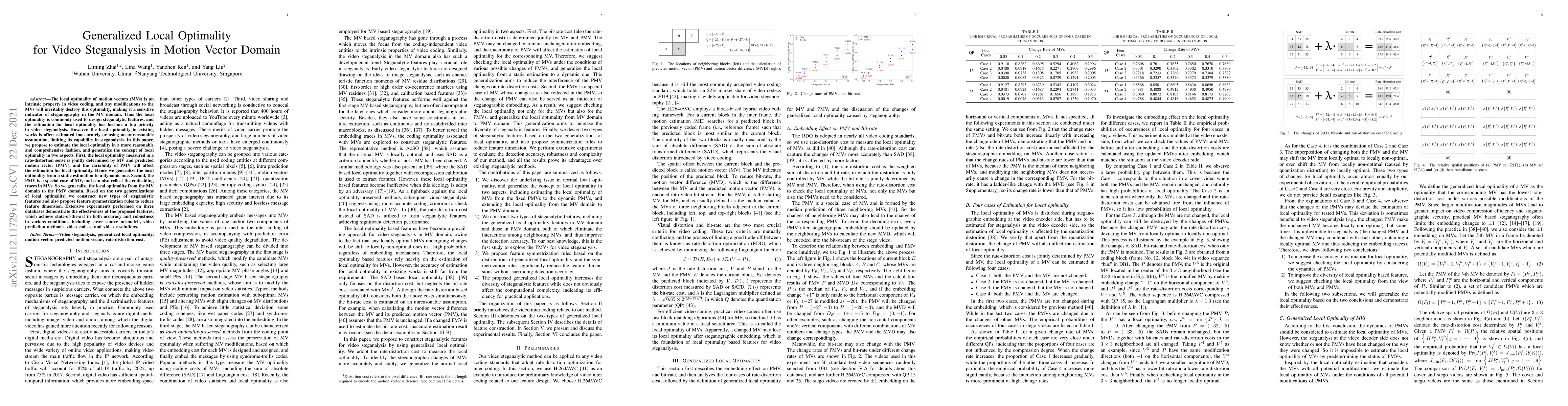 This paper proposes a generalized method for estimating local optimality in video steganalysis, addressing inaccuracies in existing approaches. It introduces dynamic and predictive motion vector (PMV) considerations to enhance feature construction, achieving state-of-the-art accuracy and robustness across various conditions.